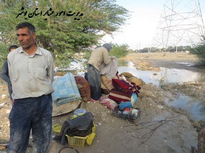 بنا به گزارشهاي رسيده از طرف عشاير خسارت ديده از باران و طوفان مورخه ۶/۹/۹۱ در شهرستان دشتي آقاي كهزادي رئيس اداره امورعشاير دشتي از تعدادي از مراتع بازديد بعمل آورد و خسارتهاي وارده را به رئيس محترم ستاد بحران شهرستان دشتي و جمعيت هلال احمر شهرستان دشتي اعلام نمود. خسارات از قبيل صاعقه زدگي دامها-پاره شدن چادر- از بين رفتن علوفه-مسدودشدن ايلراهها- مفقودشدن موتور آبكش